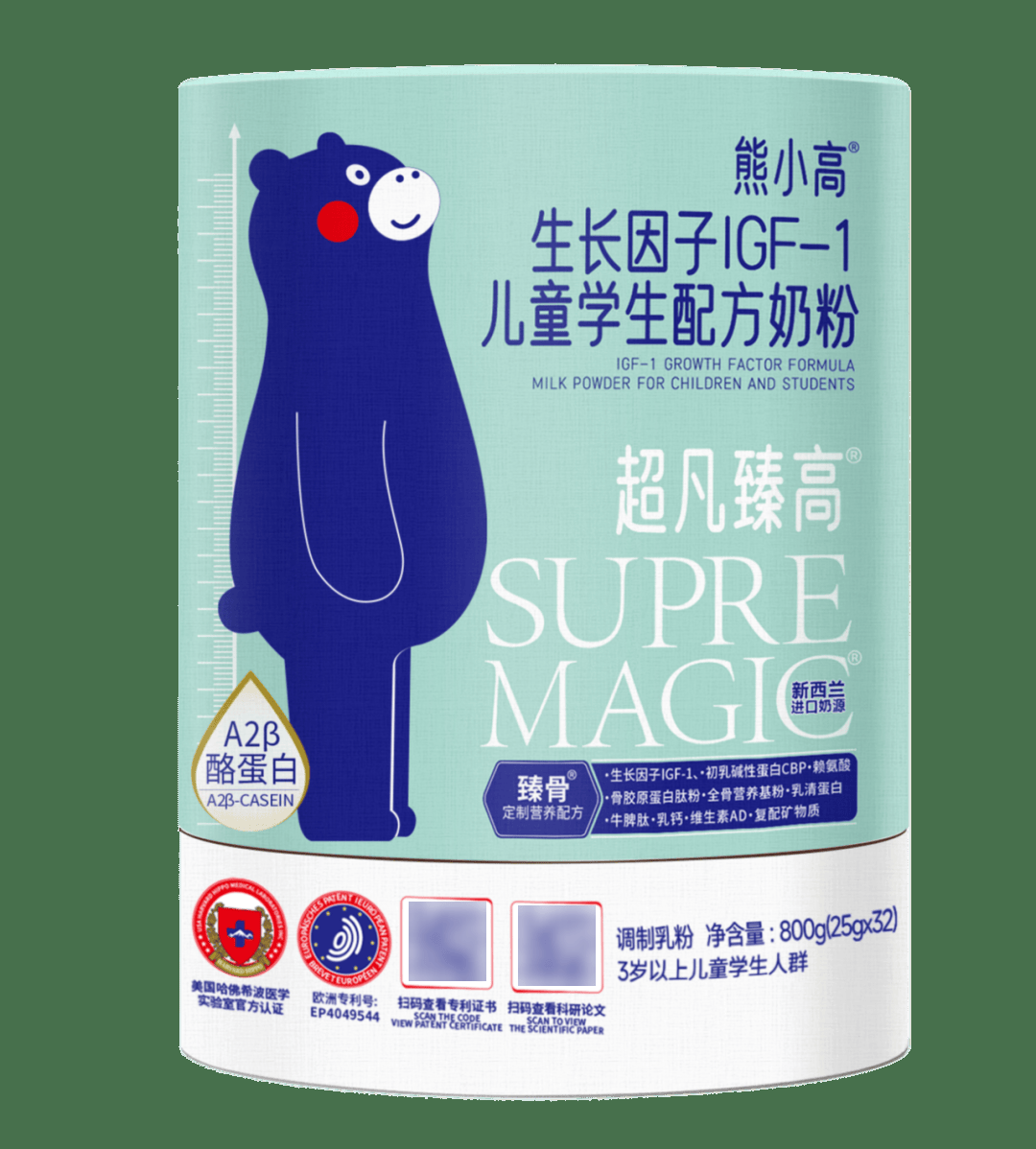据了解,熊小高超凡臻高儿童学生配方奶粉是国内首创生长因子IGF-1儿童学生奶粉,其采用的《儿童增高奶粉的配置方法和配方》专利技术,获得欧盟发明专利认证。营养元素方面,超凡臻高科学搭配柠檬酸钙+全骨营养基粉+骨胶原蛋白肽+初乳碱性蛋白四重促骨骼生长成分,协同益生元+乳糖酶+益生菌优化营养吸收。同时添加DHA+磷脂酰丝氨酸+牛磺酸支持大脑发育,融合山药、茯苓等药食同源成分健脾助消化,并强化添加富硒酵母和维生素D3、K2等多种维生素和矿物质,全面满足儿童长高、益智、增强免疫的综合营养需求。