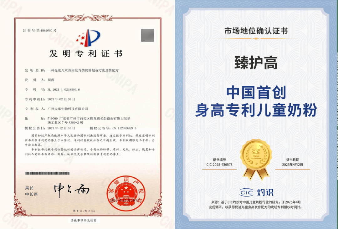 据了解,臻护高臻高荣耀是国内唯一拥有促进身高发育配方专利的儿童奶粉,也是中国首个在国家标准委员会备案儿童成长奶粉标准的企业,其创新性与专业性获得了CIC灼识市场地位确认证书,以真正的科学实证重新定义儿童身高管理标准,打造出真正具有差异价值的儿童长高营养解决方案。