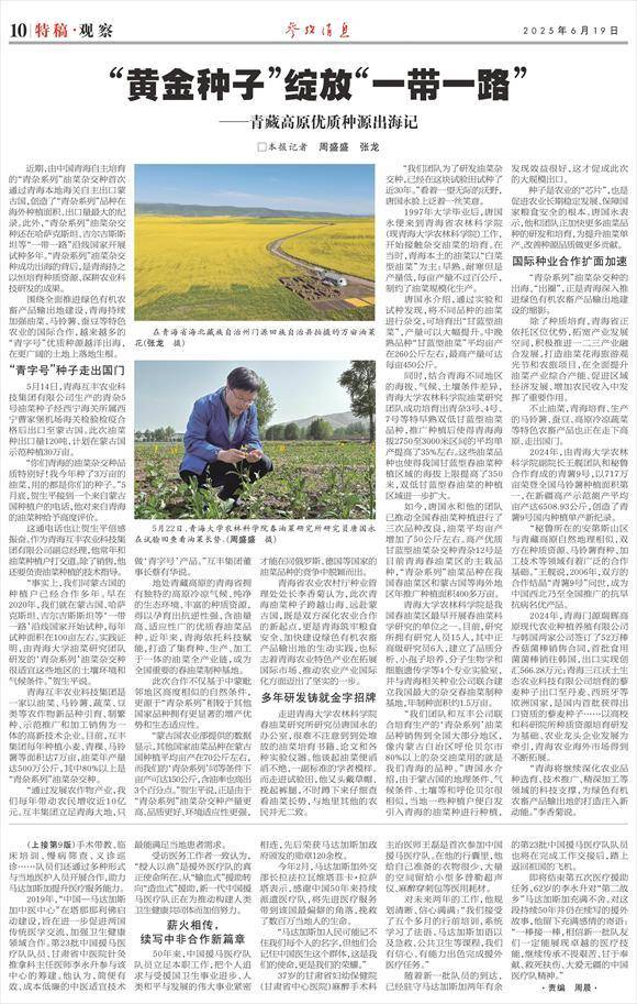 “青杂系列”油菜杂交种的出海、“出圈”,正是青海深入推进绿色有机农畜产品输出地建设的缩影。