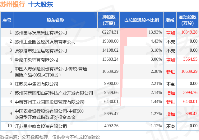 根据苏州银行2025年一季报公布的十大股东详情如下: