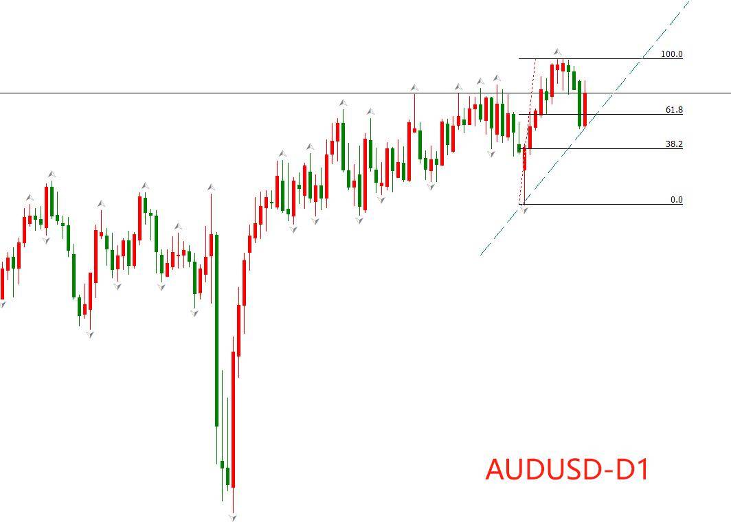 走势结构角度看,日线级别,AUDUSD处于中期上涨趋势之中,但上涨力度较弱,随时面临转势可能。最新波段为下跌,周一的长阴线造成下跌加速,但今日的长阳线收回了大部分跌幅,意味着市价所在的0.618分位处,可能存在较强的支撑。短期结构来看,6月23日至今,AUDUSD日线形成先涨后回调的走势,连接两个低点可以画出趋势线。如果支撑有效,未来出现上涨波段,涨势有可能沿着趋势线上行。