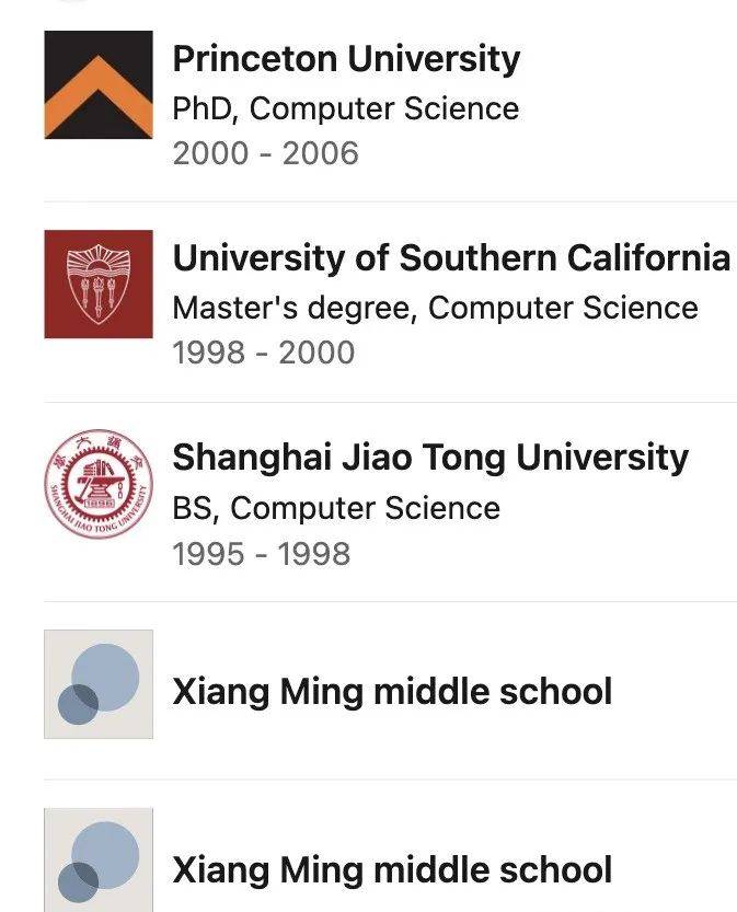 公开资料显示,庞若鸣本科毕业于上交大,主攻计算机科学。随后,他在南加州大学、普林斯顿大学完成了硕博学位。值得一提的是,他高中曾就读于上海市重点中学——向明中学。