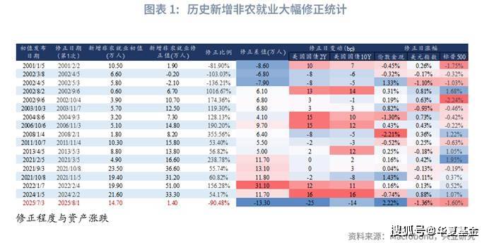 从修正日各资产涨跌情况看,4次下修中,本次修正即8月1日,美国标普500下跌1.6%,纳斯达克指数下跌2.24%,美元指数跌1.36%,伦敦金现涨2.22%,涨幅最大。