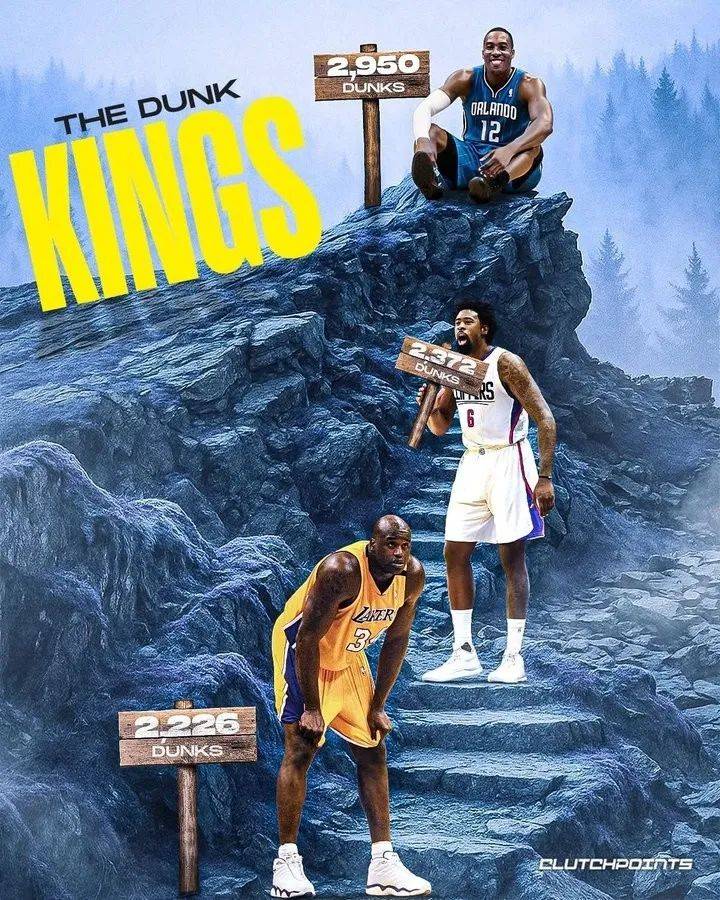 美媒晒图历史扣篮数前三:霍华德、小乔丹、奥尼尔。