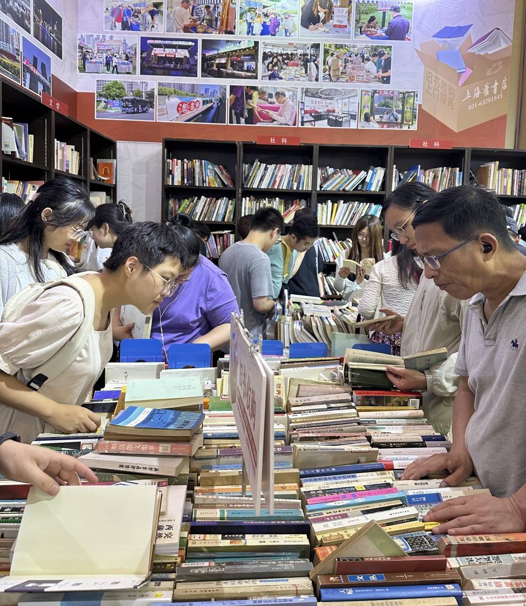 当再走到楼下上海旧书店的展位时,看到有更多的读者在专注淘书,我看了一眼价格,还是很公道的。可惜已经完全没有力气加入战斗。买旧书有种大海淘金的感觉,淘金就要慢慢来,一本本看,然后衡量有没有必要买,也需要有很好的体力才行。