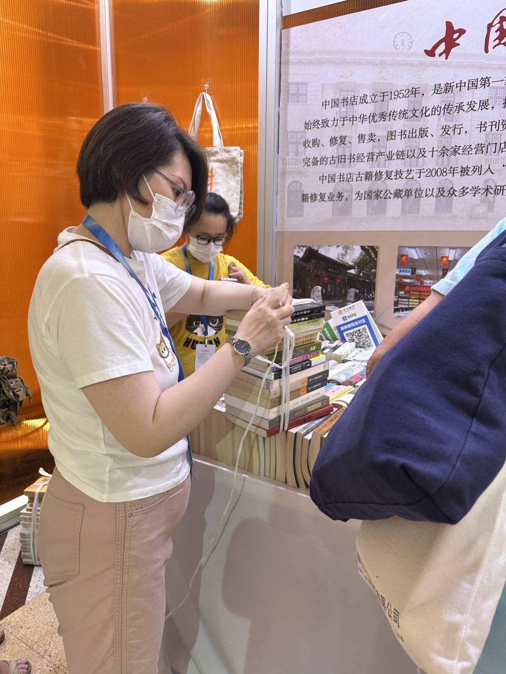 这会儿有个老大爷跟工作人员抱怨图书价格有点高,工作人员的意思是,这个价格对于上海来说应该不算贵。老大爷反驳道,上海城隍庙的旧书其实很便宜的,言语间已经开始了地域之战。虽然中国书店展位的旧书价格也偏高,但仍有一位女士买了两大摞旧书带走。