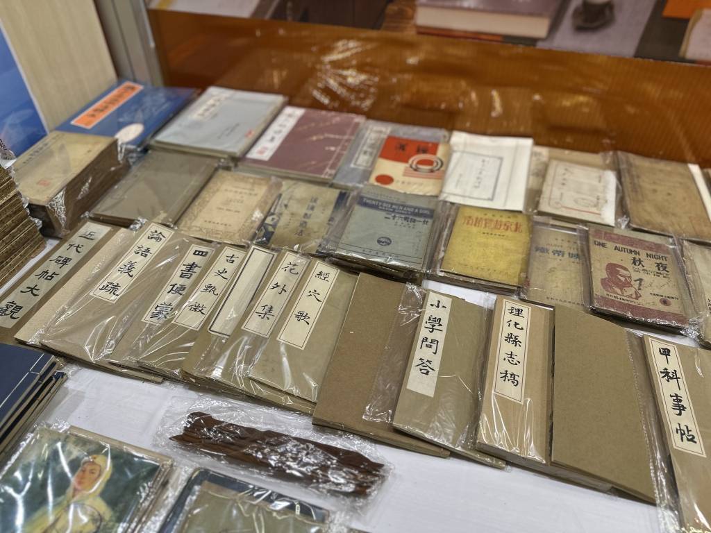 成都毛边书局的工作人员非常热情,会向驻足的读者介绍书店情况。从展板的照片来看,这家旧书店的面积的确很大,一共有1600平方米。因为有当地政府的支持,旧书店还能为社区的文化建设做贡献。这家书店的老板也来到了上海书展现场,在毛边书局创办之前,他就已经开始从事旧书业务了。现在一周七天中的四天,他都在外收购旧书。