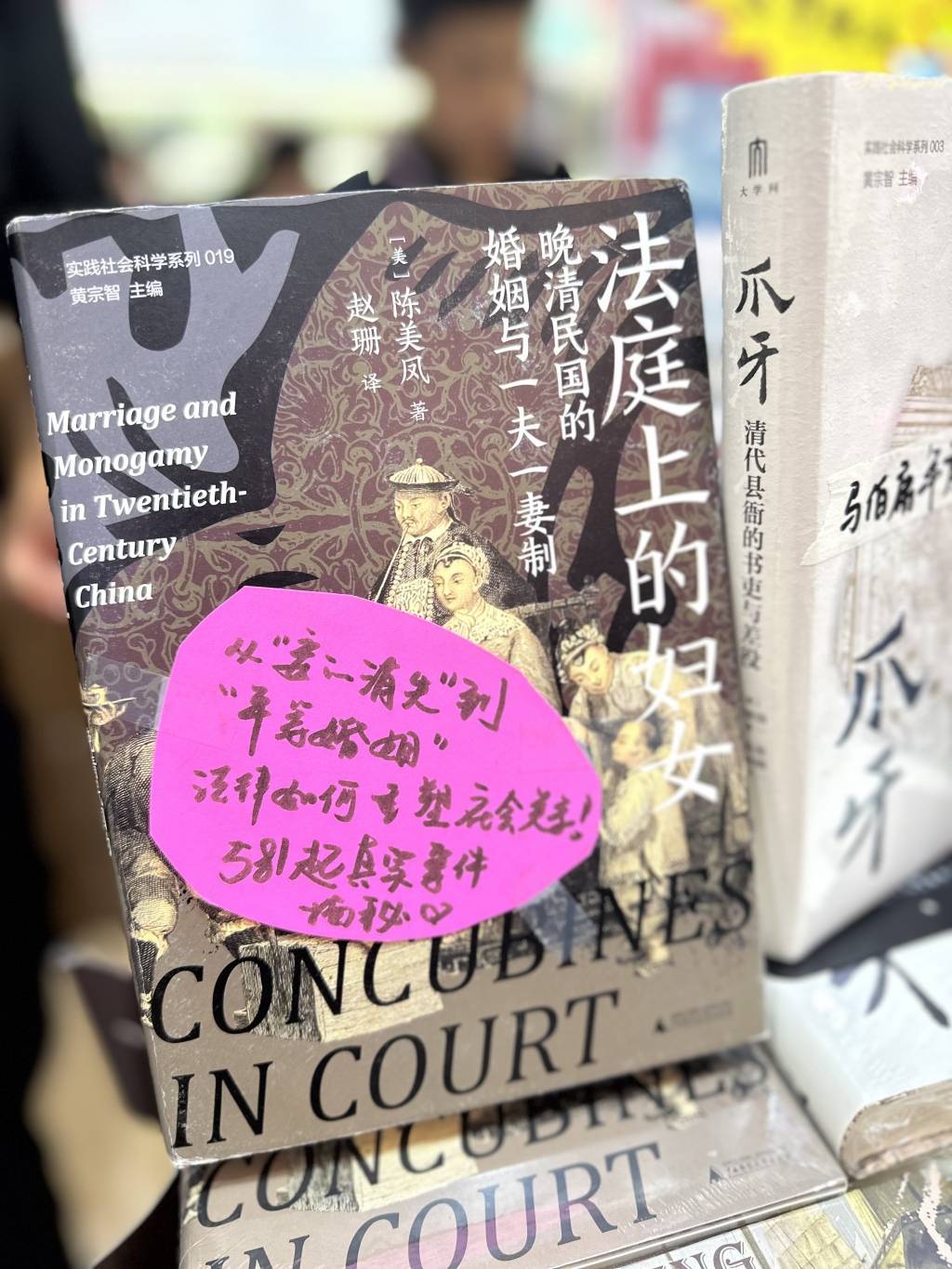 没有物质激励,从情感或者情绪的向度打动读者也可行。在广西师大出版社的展位,编辑为很多样书都手写了推荐语。推荐语写在颜色醒目的便利贴上,还是非常有效的。那些都是偏学术的图书,怎么让读者找到共鸣?如何让读者对这些书感兴趣?有了这些手写的推荐语,好像读者同作者与编辑在进行一种现场的无声交流,并且不是死板或者没有生命力的,手写文字本身就有一定的温度。