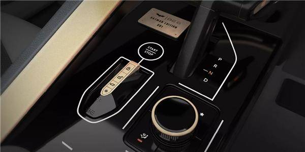 内饰采用黑色绒面和皮革座椅配以金色细节,同样充满蝙蝠侠风格, 比如蝙蝠剪影点缀座椅、内饰标签、门带、仪表板和数字驾驶舱的欢迎画面,中控台装有“拉丝炼金金蝙蝠侠版”编号铭牌。