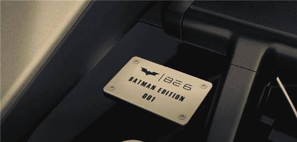 采用定制绸缎黑色涂装,辅以亮光黑装饰,前车门的蝙蝠侠贴纸和前翼子板上的金色蝙蝠标志。