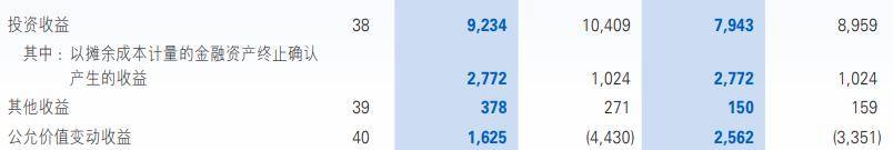 财报显示,相比去年同期,以摊余成本计量的金融资产终止确认产生的收益多了17.48亿,公允价值变动直接由负转正,变成了16.25亿,这很有可能是抛售了高息债券或者确认盈利带来的。