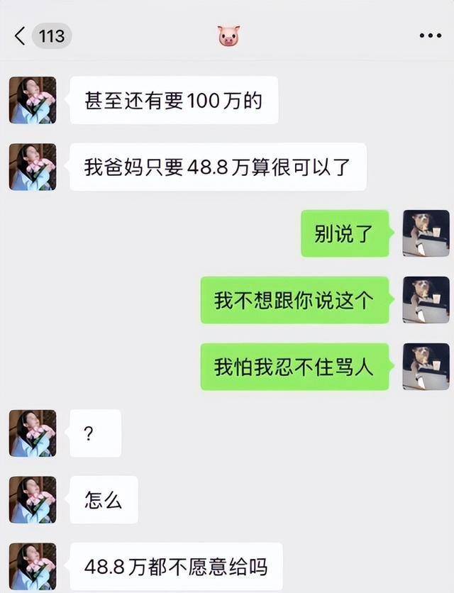 而她的爸妈只要48万,已经很仁慈了,看到女生这番话,小伙被气的都爆了粗口。