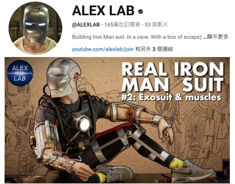 因仿造钢铁侠战甲而走红的YouTube博主拥有165万粉丝,其单个视频最高播放量达590万次 | 图源YouTube