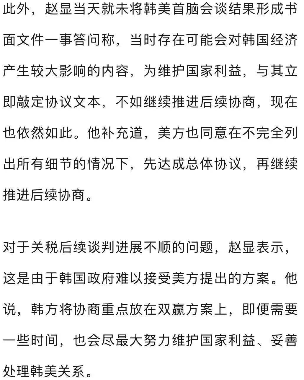 据报道,质询会上,关于韩国公民被美方拘押事件,共同民主党议员李仁荣表示,“韩国国民对此感到不满,认为‘美国对盟友(韩国)做得太过分’。”赵显回应称,“冷战结束已有30年,国际局势发生变化,欧美受困于移民问题,在这种情况下,美国发生了一些变化。”他说,“近期切身感受到,美国已不再是以前那个与盟友和友邦保持良好合作的国家。”