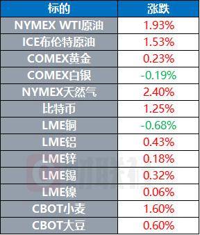 COMEX黄金期货涨0.23%,报3727.5美元/盎司;COMEX白银期货跌0.19%,报42.88美元/盎司。