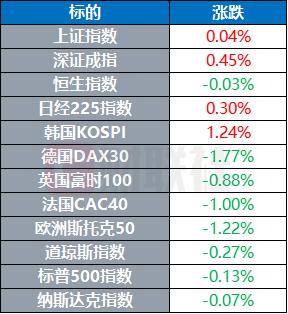 欧洲股市集体收跌,欧洲斯托克50指数跌1.22%,英国富时100指数跌0.88%,法国CAC40指数跌1.00%,德国DAX30指数跌1.77%。