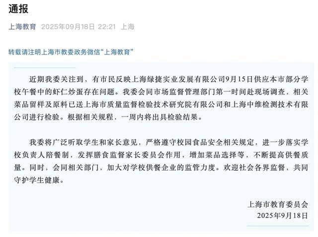而在9月15日,多所学校的一道虾仁炒蛋被临时撤掉,有家长反映撤掉的原因是这道菜“有臭味”,但上海绿捷却说是虾仁中有细沙,现在上海市教委已经介入调查。