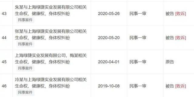 说起来挺讽刺的,上海绿捷在2019年和2022年,曾经多次因生命权、健康权、身体权纠纷被起诉,而且被判败诉赔偿。
