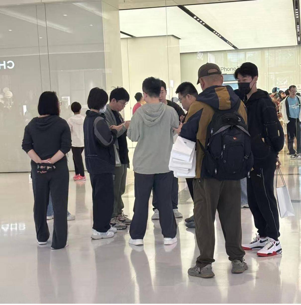9月19日上午十点半,北京朝阳大悦城Apple直营门店外的“黄牛”正在推销手机。 新京报贝壳财经记者 张晗/摄
