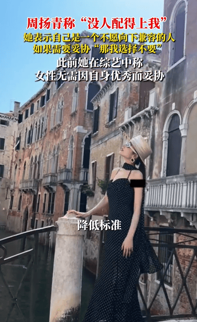 搜狐娱乐讯 近日,周扬青在真人秀中称“没人配得上我”,她称自己是一个不愿意向下兼容的人,如果需要妥协“那我选择不要”。此前周扬青在《我们恋爱吧》节目中表达过类似“没人配得上我”的自信态度,她强调女性无需因自身优秀而妥协,更不该为他人自卑买单。