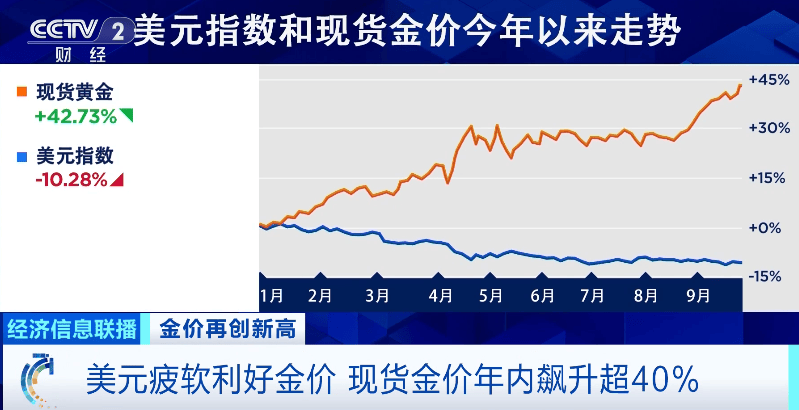 今年衡量美元对六种主要货币的美元指数迄今为止已下跌超10%,而与此同时现货金价年内已涨超40%。