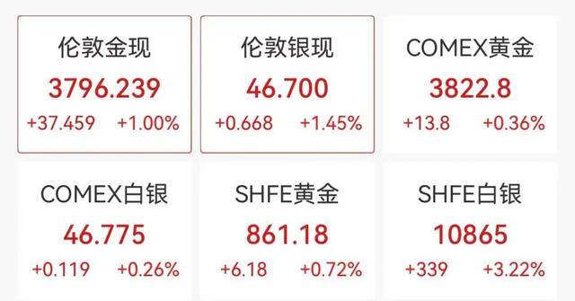 9月29日,黄金白银全线飘红,其中现货黄金再刷历史新高,日内最高涨超1%触及3798美元/盎司,COMEX黄金一度站上3830美元/盎司。