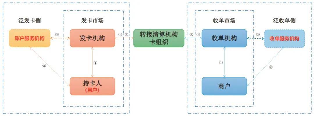 随着科技的发展,实体银行卡逐渐被App应用替代,POS机逐渐被行业SaaS系统替代,分别冲击了发卡机构与持卡人、收单机构与商户之间的业务联接,传统金融监管体系受到严重挑战。该模式下,钱包方、手机厂商等账户服务机构和软件服务商、外包代理方等收单服务机构分别在用户端、商户端取得较强话语权,发卡机构和收单机构被通道化,原发卡市场和收单市场已拓宽为泛发卡侧和泛收单侧市场。目前,清算机构尚未针对账户服务机构和收单服务机构建立完整配套的业务技术准入要求,只有确保泛发卡侧和泛收单侧机构在其网络内主权得到较好维护,支付四方模式基础才能更加牢固。