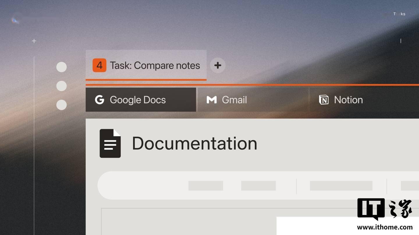 Opera Neon 还新增了名为“Tasks”的标签页管理功能,该功能可将 AI 聊天内容与标签页整合为独立工作区。