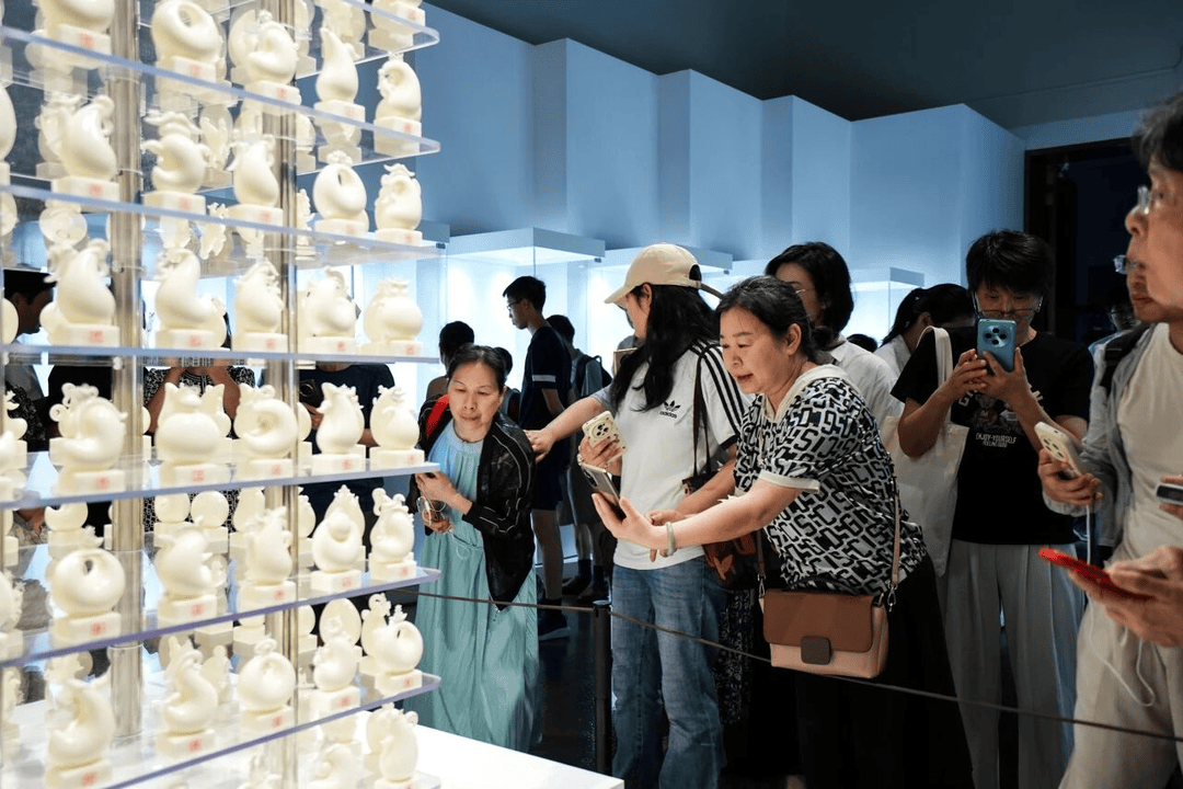 “万象本色——‘中国白・德化瓷’上海艺术大展”则是现象级的“流量担当”,开展至今已有近70万观众打卡,直接带动世博地区商场客流同比增长30%以上。为回应观众热情,展览从原定闭展日延期至10月8日,国庆假期成为最后观赏窗口。