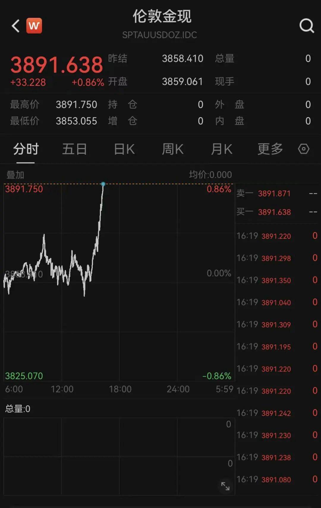 北京时间10月1日,金价再创新高。Wind数据显示,截至发稿,伦敦现货黄金盘中最高价突破3890美元/盎司,截至发稿报3891.638美元/盎司。记者获悉,多家黄金珠宝品牌当日公布的境内足金首饰价格也水涨船高,最高已攀升至1130元/克。