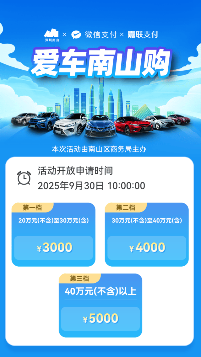 在汽车消费领域,南山区启动“爱车南山购”之“Chill日好车节”购车补贴活动,3000万元真金白银为消费者送上最直接、最实在的优惠;