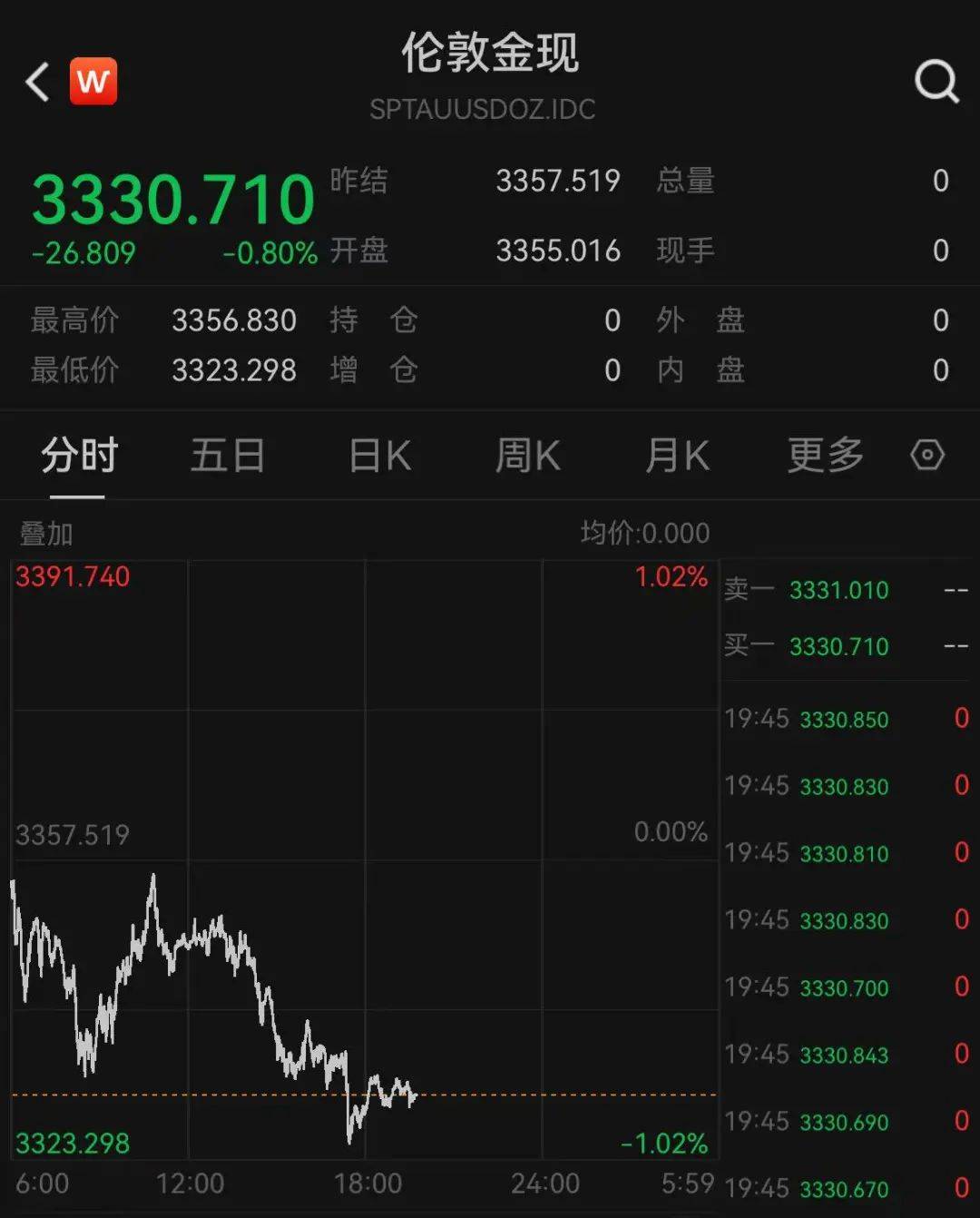 与此同时,现货黄金短线走低,一度回落至3330美元/盎司下方,截至19:45,报3330.71美元/盎司。COMEX黄金期货主力最新报3329.8美元/盎司。