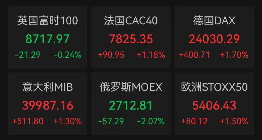 5月26日,欧股开盘普遍高开,德国DAX指数涨1.76%,法国CAC40指数涨1.32%,欧洲斯托克50指数涨1.64%。截至19:45,德国DAX指数涨1.70%,法国CAC40指数涨1.18%,欧洲斯托克50指数涨1.50%