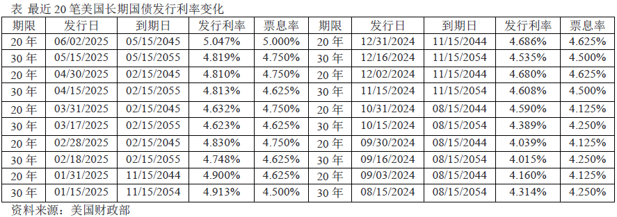 如表所示,5月21日,美国财政部拍卖了(发行日为6月2日)157.8亿美元的20年期国债,认购率为2.48倍,但发行利率高达5.047%,引起了市场巨大的恐慌,投资者担心美国国债市场会崩溃。与2024年9月3日的4.16%相比,20年期国债发行利率的确拉升了不少,说明投资者担心目前的货币和关税政策会拉高通胀。鉴于美国与各国关税谈判进展缓慢,反反复复的关税政策迟早会推高通货膨胀。目前表面的风平浪静具有很大的欺骗性,外国投资者不愿意冒险入市。