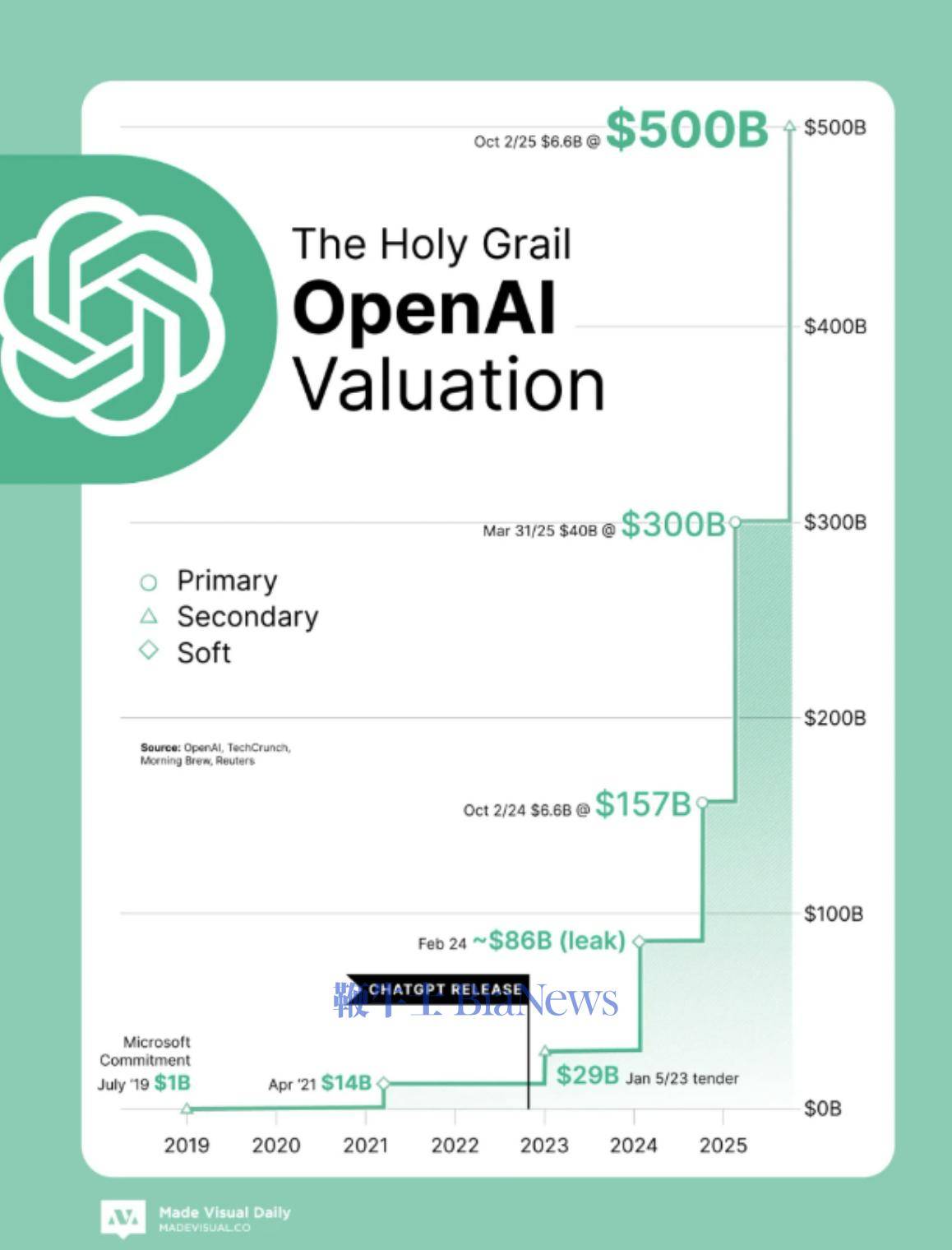 今年 3 月,OpenAI 在软银领投的融资中估值为 3000 亿美元,此次估值跃升凸显市场对其增长预期。