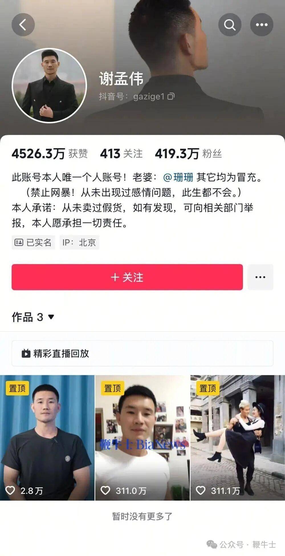10月4日,鞭牛士发现“嘎子哥”谢孟伟抖音账号已解封并发布了最新视频。