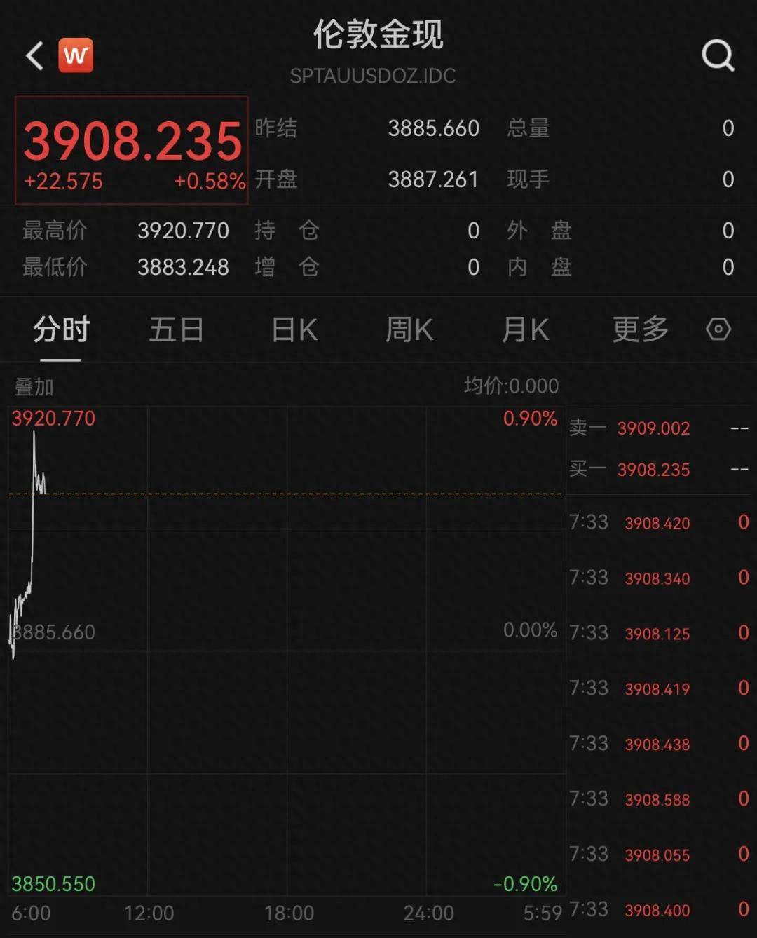 10月6日(周一),由于美国政府持续关门带来的不确定性加剧以及降息预期升温,现货黄金开盘走强,一度涨近1%,最高升至3920.77美元/盎司,再创历史新高;此时距离首次突破3800美元关口仅不到10天,年内累计涨幅已达49%。