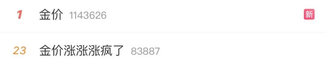 话题“金价涨涨涨疯了”登上热搜,“金价”更是冲上热搜第一。