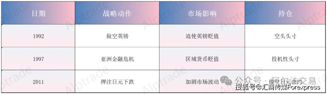 索罗斯可根据基本面变化瞬间做决策,同时投入巨额资金单枪匹马推动市场。