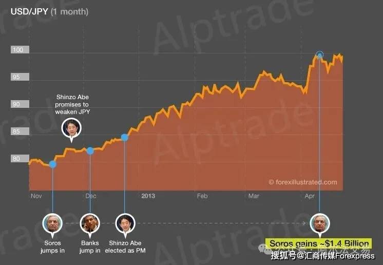 索罗斯预测这一趋势,并在2012年11月中旬将其“索罗斯基金管理公司”24亿美元资产的10%投入USD/JPY。