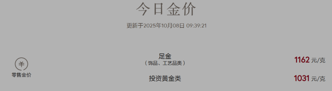 随着国际金价近日大涨,国内黄金饰品价格也水涨船高。截至目前,周生生足金饰品价格涨至1165元/克,周大福足金饰品价格为1162元/克。