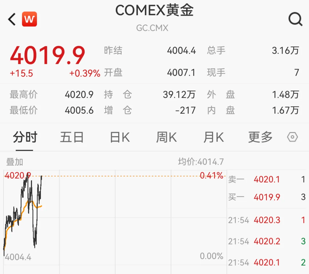 北京时间今天(10月8日)上午,现货黄金突破4000美元/盎司大关,持续创新高,年内涨幅超52%,COMEX黄金也已突破4000美元关口。