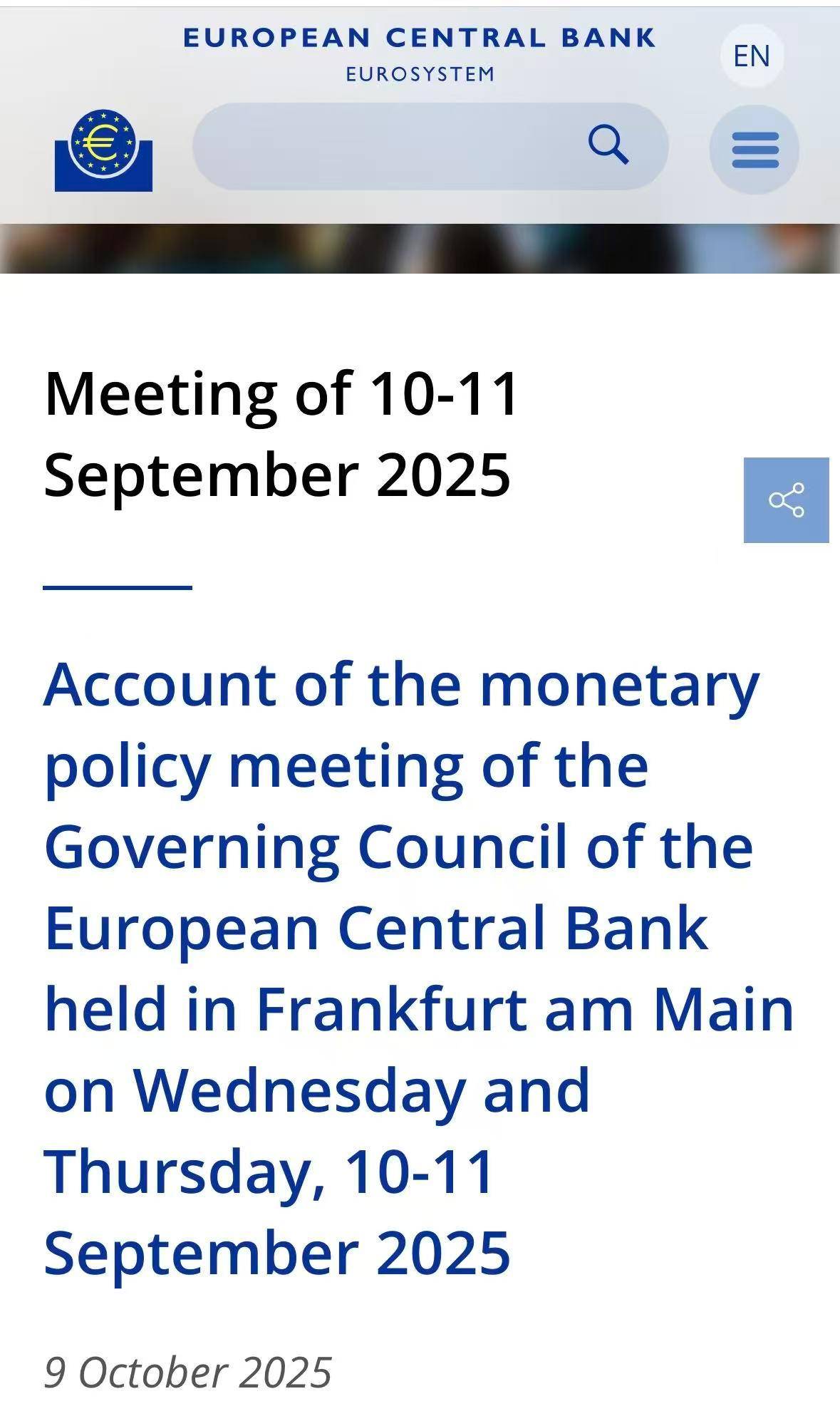 10月9日,欧洲央行发布9月货币政策会议纪要显示,欧洲央行官员在9月曾考虑再次降息,但在上行通胀风险之下最终没有这样做。