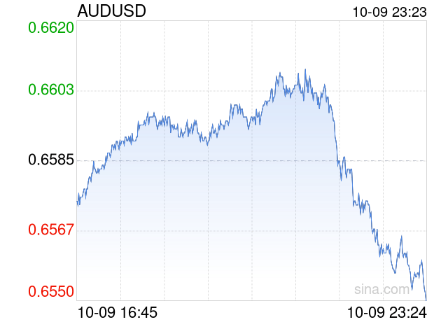 新浪外汇消息2025年10月09日,截至23时23分,外汇市场上澳元兑美元汇率跌破1澳元兑换0.6551美元。跌幅为-0.5163%