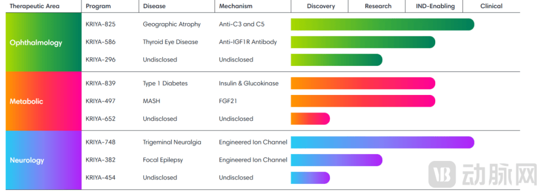 值得注意的是,Kriya在发展过程中通过并购加速构建覆盖神经、代谢等慢病领域的基因治疗产品矩阵。