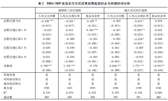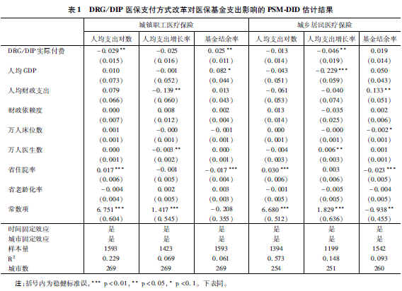 度量了因变量在DRG/DIP改革政策冲击前后的平均差异,即改革效果。