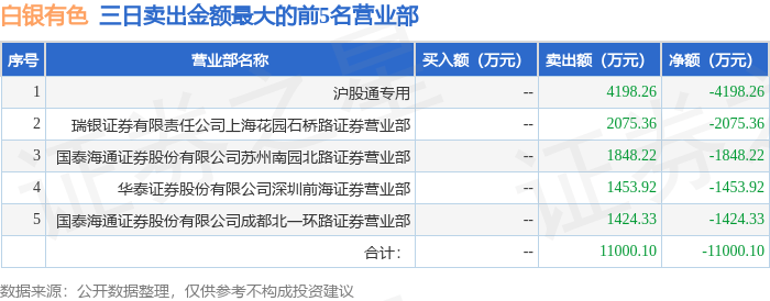 证券之星消息,沪深交易所2025年10月10日公布的交易公开信息显示,白银有色(601212)因非ST、*ST和S证券连续三个交易日内收盘价格涨幅偏离值累计达到20%的证券登上龙虎榜。此次是近5个交易日内第1次上榜。