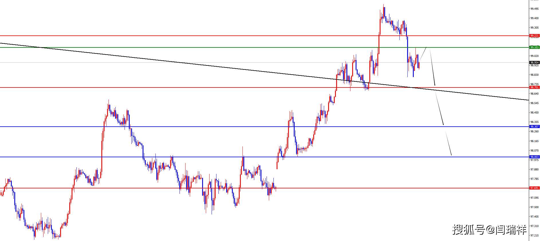 美指99.10-20区间空,防守5美金,目标98.70-98.30