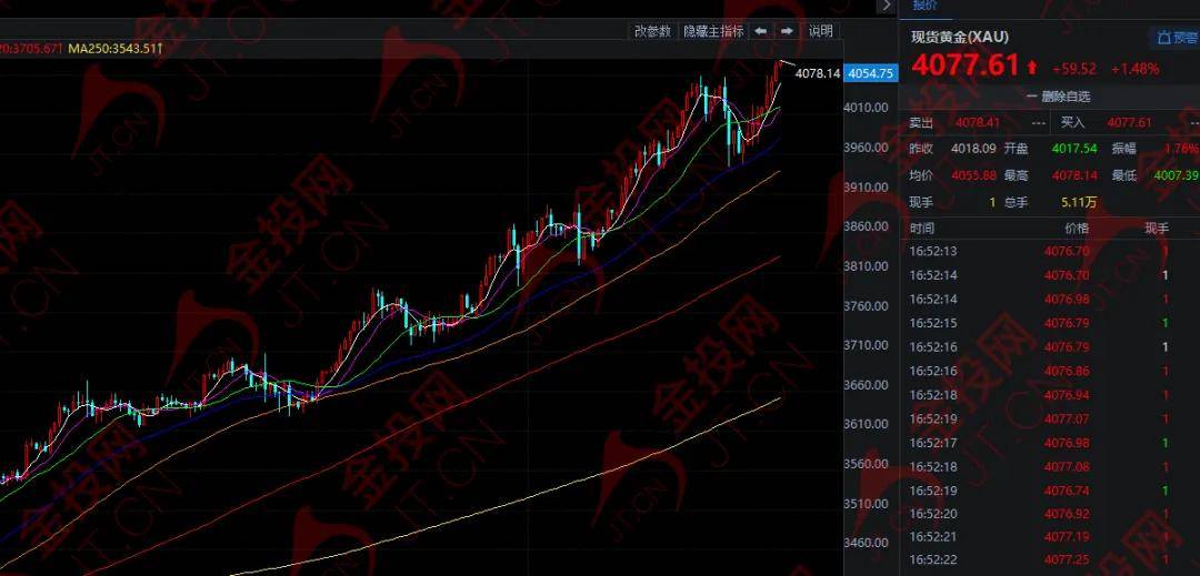今日亚市盘中,现货黄金继续冲高,一度上涨1%,创下4079.49美元的历史新高,刷新了上周三的4059.05美元纪录,目前在4074美元附近徘徊。