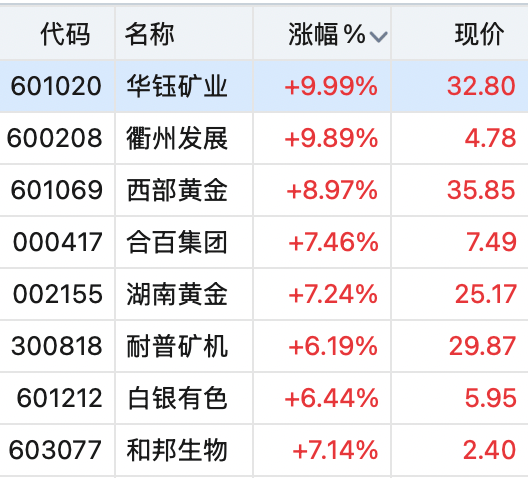 港股方面,黄金股也延续涨势,截至发稿,赤峰黄金、山东黄金、招金矿业涨超4%。